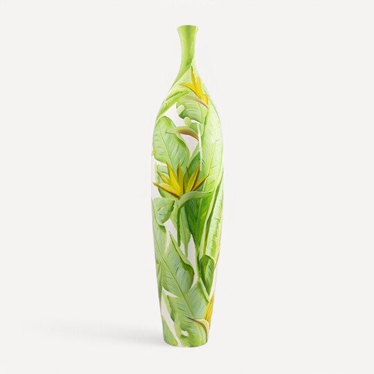 Yeşil Yaprak Desenli İnce Ağızlı Vazo Büyük Boy