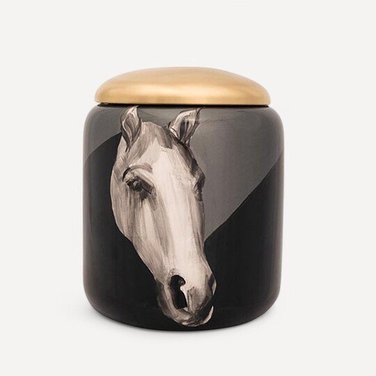Siyah Beyaz At Desenli Kapaklı Küçük Vazo