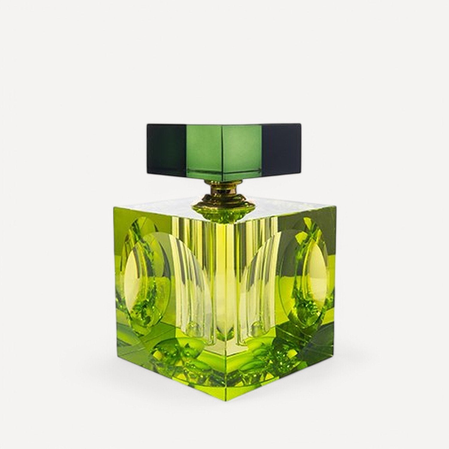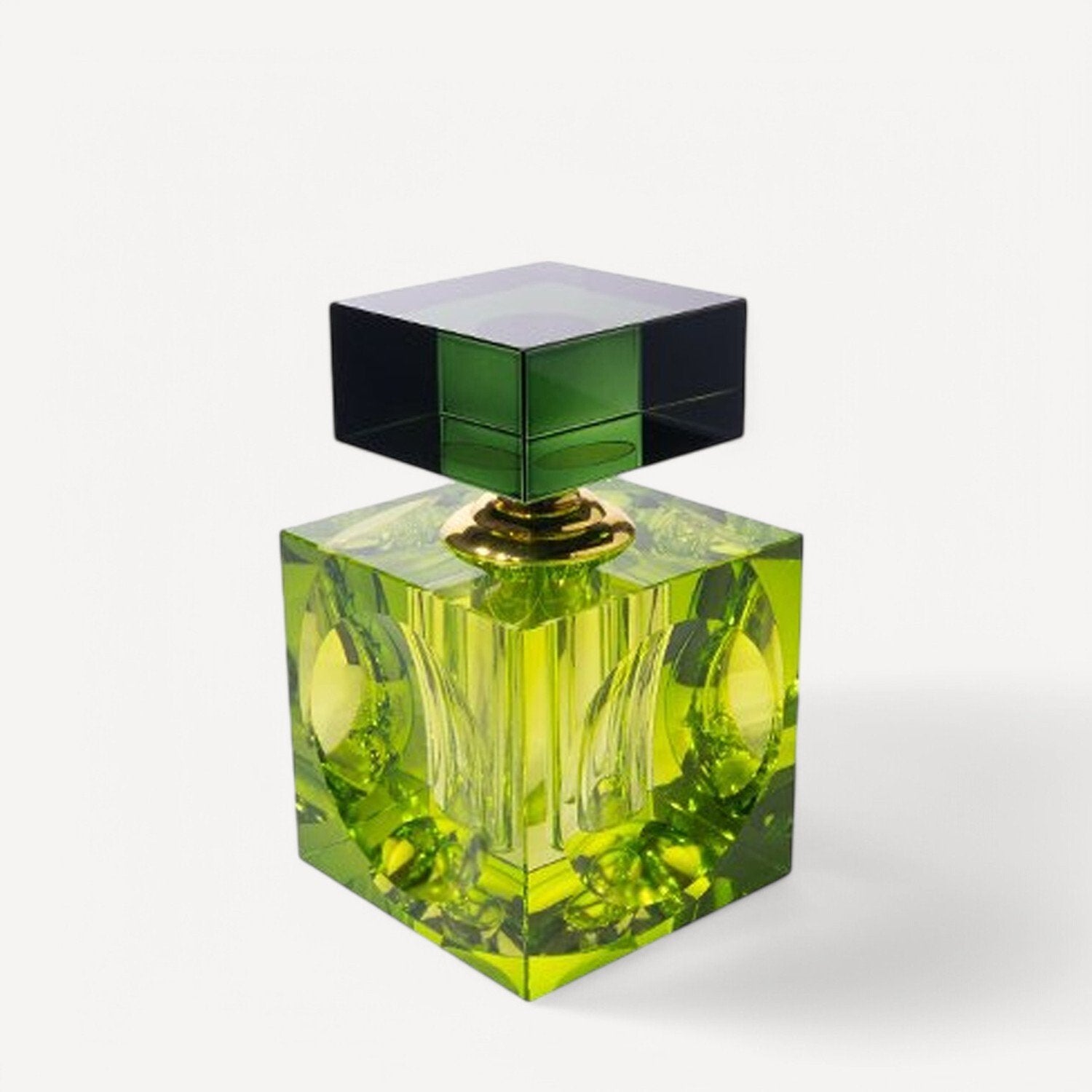 Yeşil Gold Kare Cam Dekor Şişe Büyük