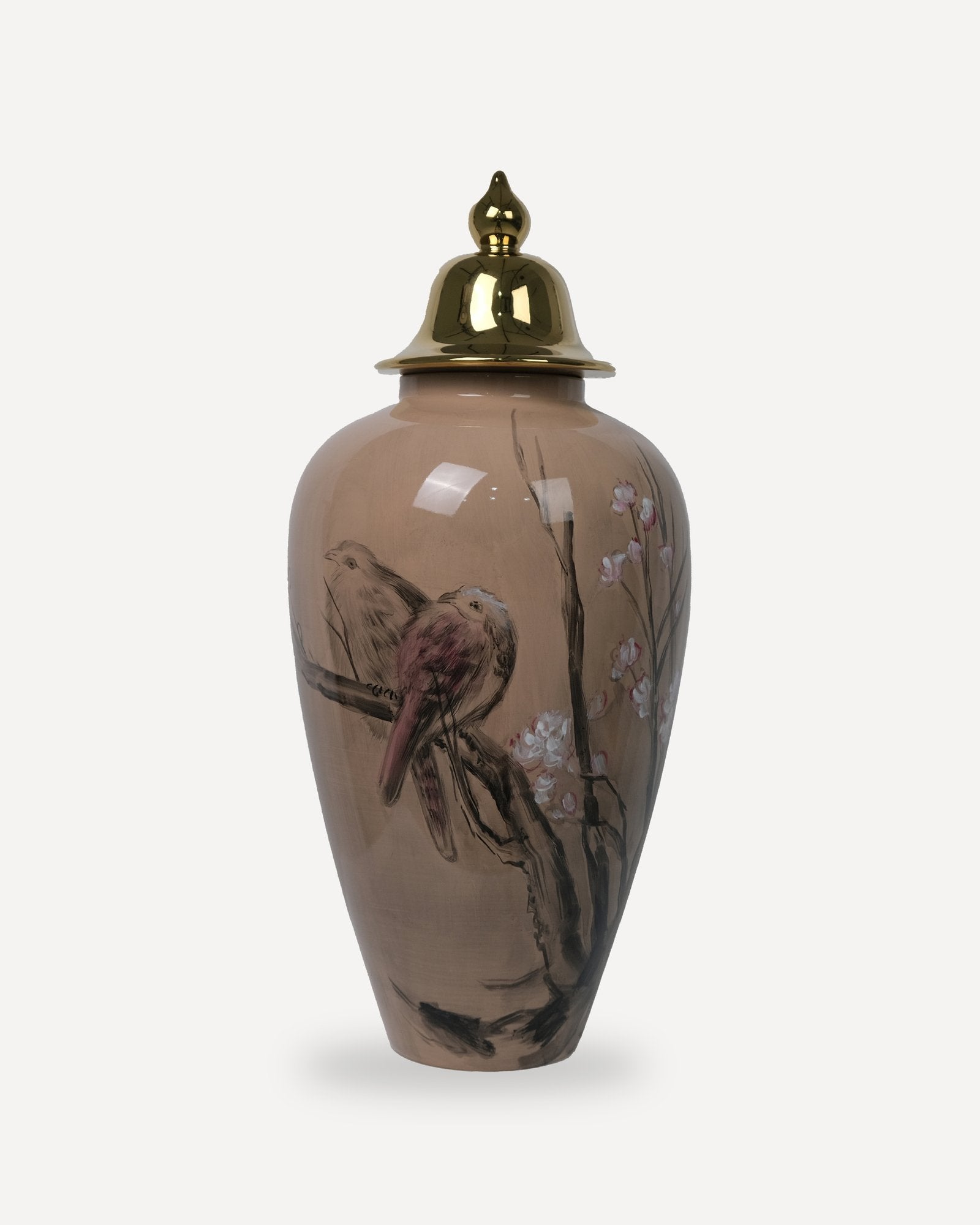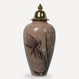 Altın Kapaklı Kuş Desenli Dekoratif Seramik Vazo 100cm