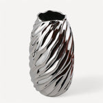 Renginin verdiği ışıltıyla tasarlanan bu Gümüş Burgulu Porselen Vazo, burgu desenli formuyla dinamik ve etkileyici bir estetik sunuyor. Dalgaların akışkanlığını anımsatan yüzeyi, ışıkla buluştuğunda farklı açılardan parlayarak mekâna göz alıcı bir hava katıyor. Modern ve şık tasarımı sayesinde çiçek aranjmanlarıyla kullanılabileceği gibi, tek başına güçlü bir dekoratif obje olarak da sergilenebilir.
