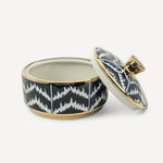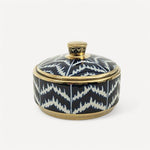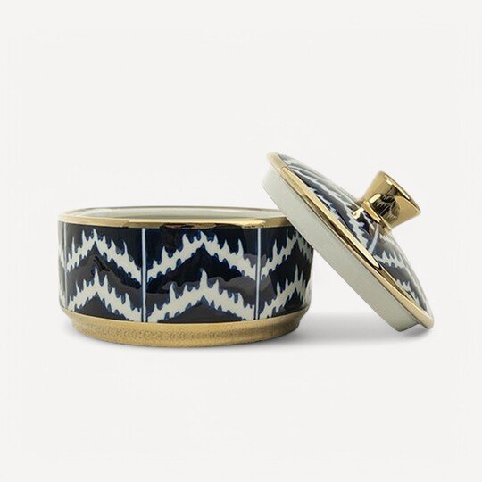 Klasik motifleri modern tasarım anlayışıyla buluşturan Hazel Serisi Kapaklı Kutu, mavi ve beyazın sofistike desenleri ve altın detaylarla bezenmiş lüks dokusu ile dikkat çekiyor. Hem dekoratif bir obje hem de işlevsel bir saklama kutusu olarak kullanılabilecek bu özel parça, her mekâna sofistike bir şıklık katıyor.