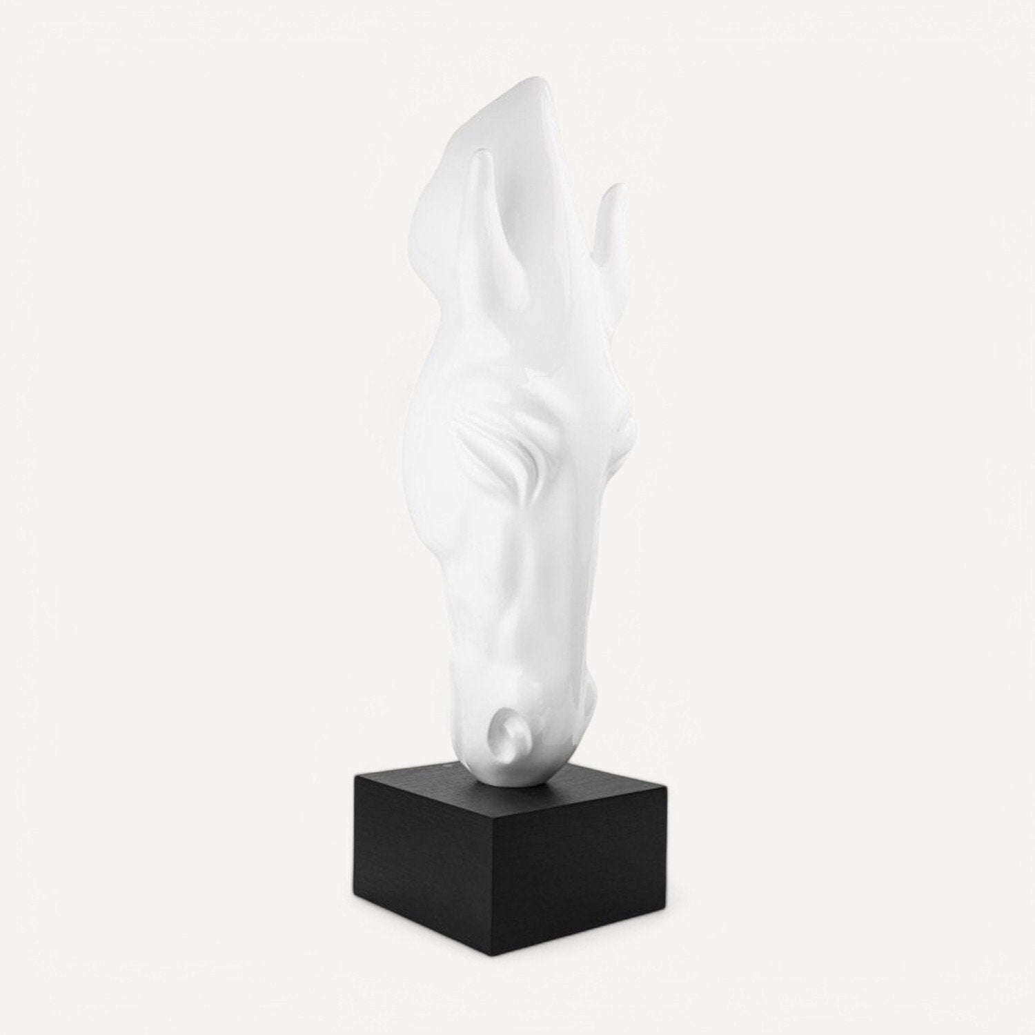 Minimalist ve akıcı hatlara sahip olan at başı figürü, sadeliğin şıklığını yansıtırken, modern sanat anlayışını iç mekânlarınıza taşıyor. Pürüzsüz mat yüzeyi, heykelin detaylarını ön plana çıkararak dekorasyonunuza sofistike bir atmosfer katıyor.