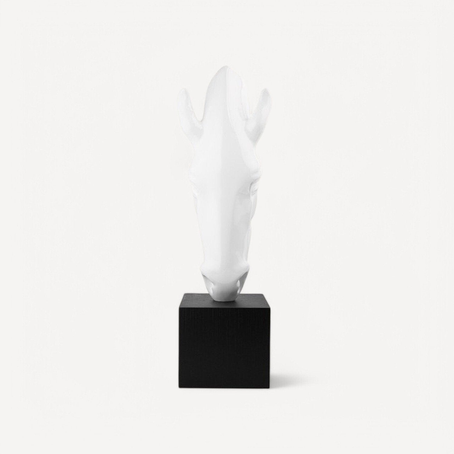Duygusal ve güçlü bir duruş sergileyen at başı figürü, sade hatlarıyla modern sanat anlayışını yansıtırken, pürüzsüz mat yüzeyiyle mekânlara şık bir dokunuş ekler. Siyah tabanı ile dengeli bir kompozisyon oluşturan bu özel tasarım, hem klasik hem de çağdaş dekorasyon tarzlarına mükemmel uyum sağlar.