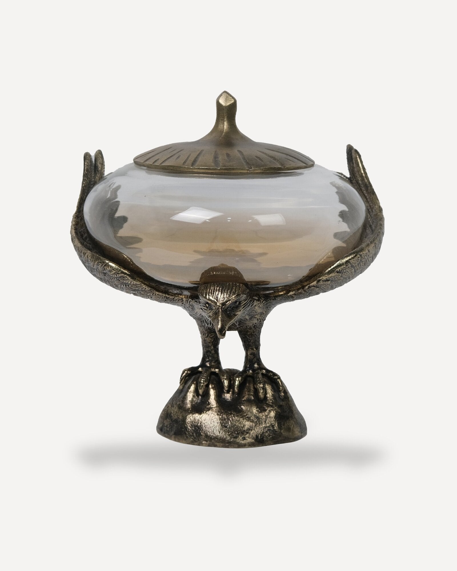 Kartal Pençesi Cam Kapaklı Dekoratif Kase