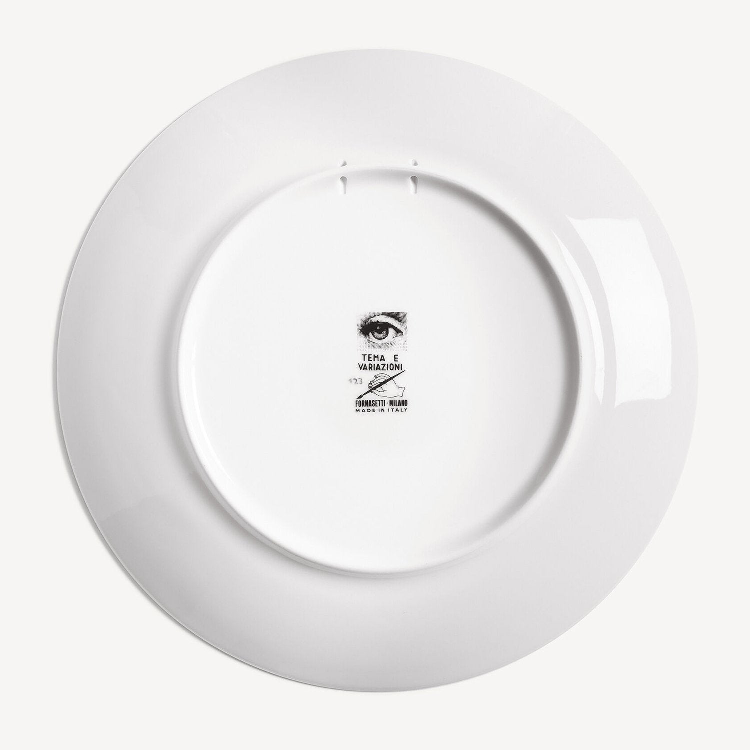 Fornasetti'nin, opera sanatçısı Lina Cavalieri’nin yüzünü yeniden yorumlaması, ikonik Tema e Variazioni serisinin temelini oluşturur ve bu el dekorlu porselen tabağı, koleksiyoncular ve sanat tutkunları için vazgeçilmez bir obje haline getirir.