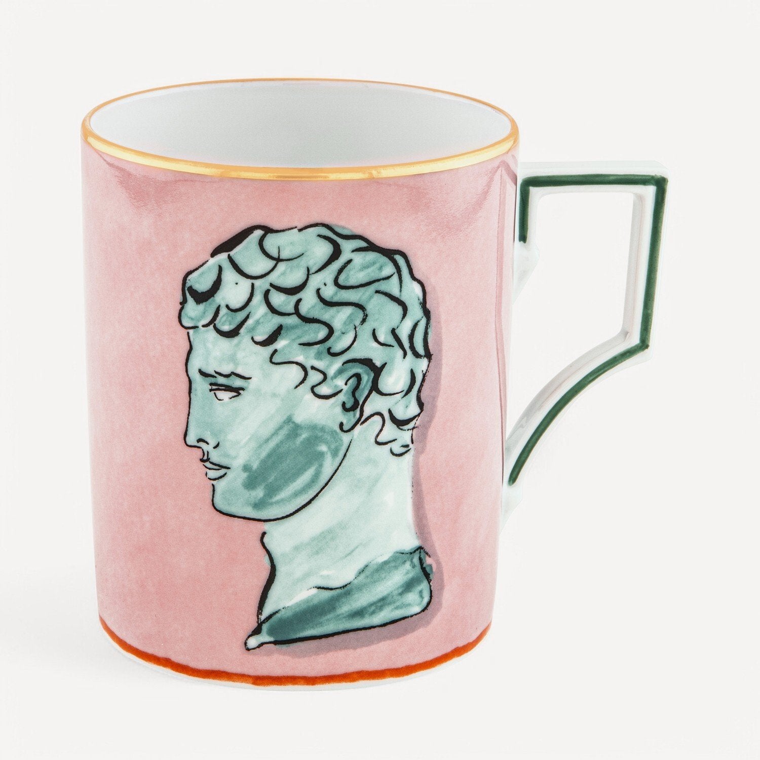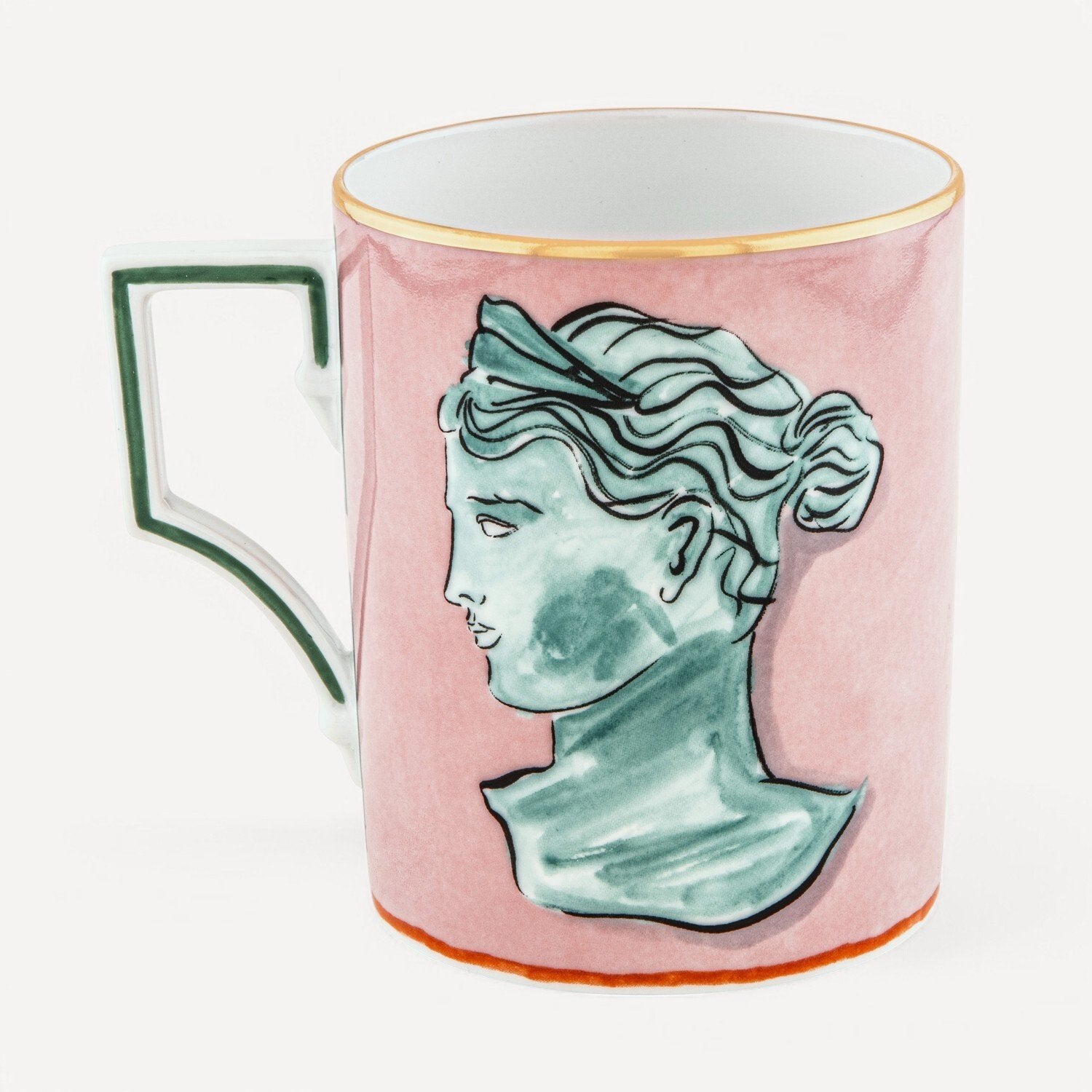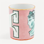 Pembe ve saf altın detaylara sahip porselen kupa. Il Viaggio di Nettuno koleksiyonuna ait bu tasarım, Luke Edward Hall tarafından mistik bir motifle tasarlanmıştır. Pastel tonlar, porselenin pembe rengiyle kontrast oluşturarak öne çıkarken, saf altın işçiliğiyle zarif bir şekilde tamamlanmıştır. Kupanın her iki tarafında, Neptün'ün derinliklere doğru destansı yolculuğuna eşlik eden tanrılardan birinin tasviri yer almaktadır.