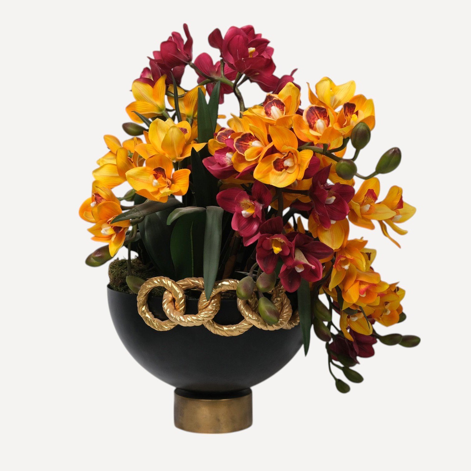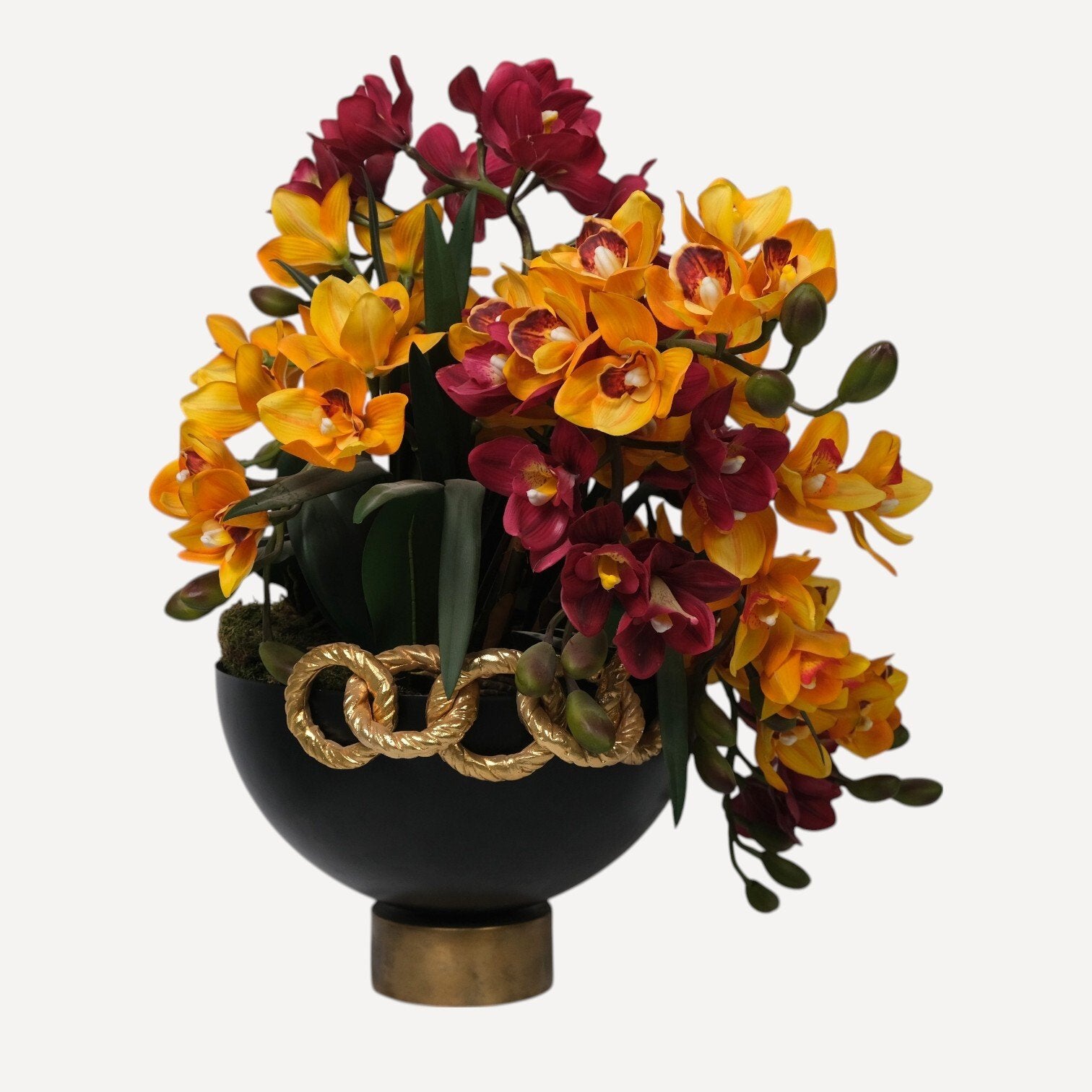 Altın Zincirli Siyah Saksıda Orkide Aranjmanı
