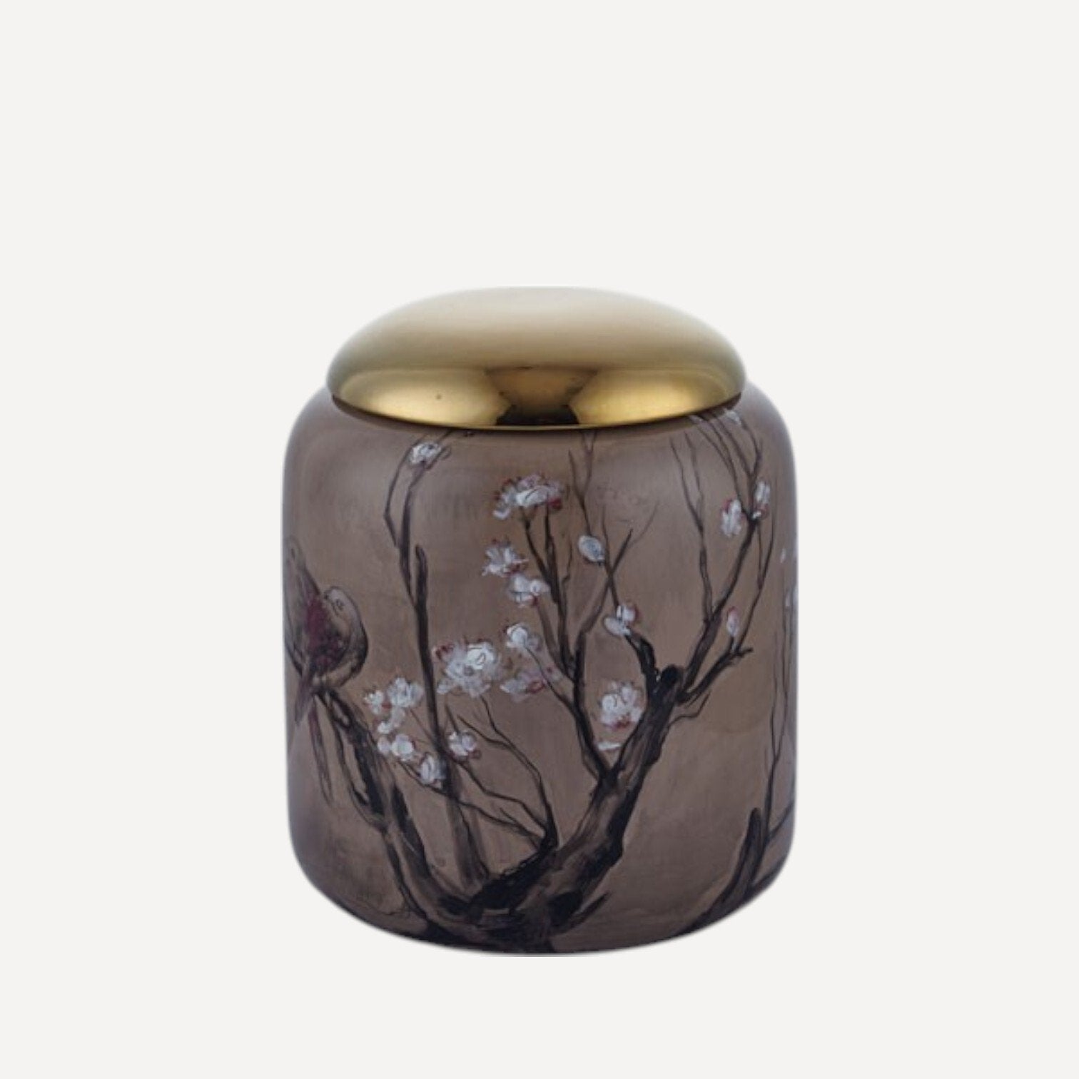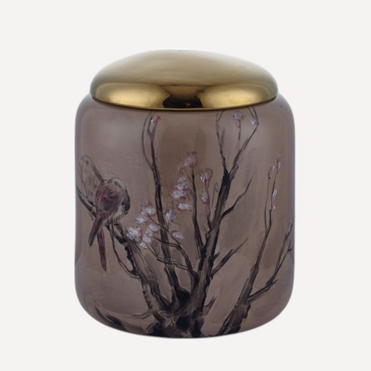 Çiçek Açan Dal ve Kuş Temalı Seramik Kavanoz 25cm