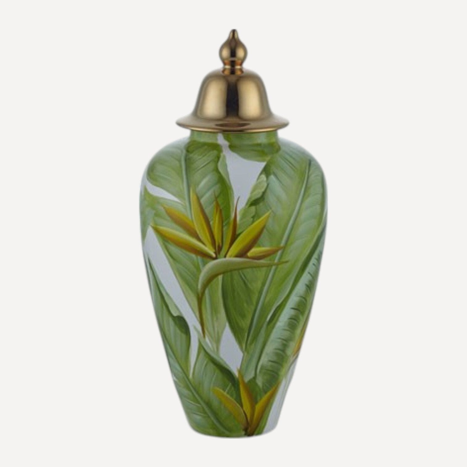 Yeşil Yapraklı Dekoratif Seramik Vazo 65cm