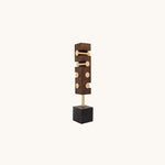 Mimari formlardan ilham alan bu Pirinç Detaylı Ahşap Dekoratif Heykel, modern tasarımı ve dikkat çekici kompozisyonuyla mekanlarınıza sanatsal bir dokunuş katıyor. Lake kaplamalı gövde, pirinç silindir detaylarıyla zenginleştirilirken, siyah mermer kaide, denge ve zarafeti bir araya getiriyor.