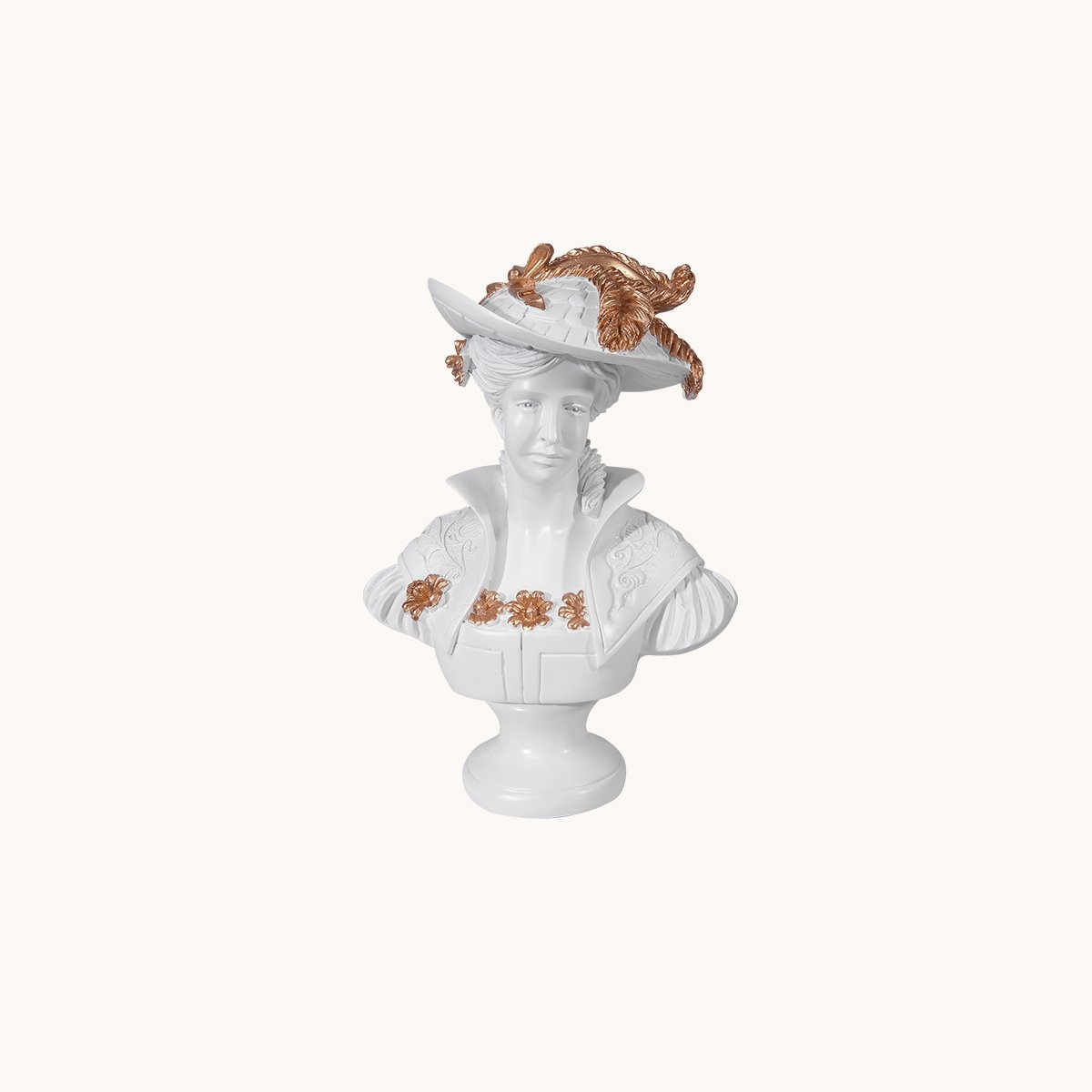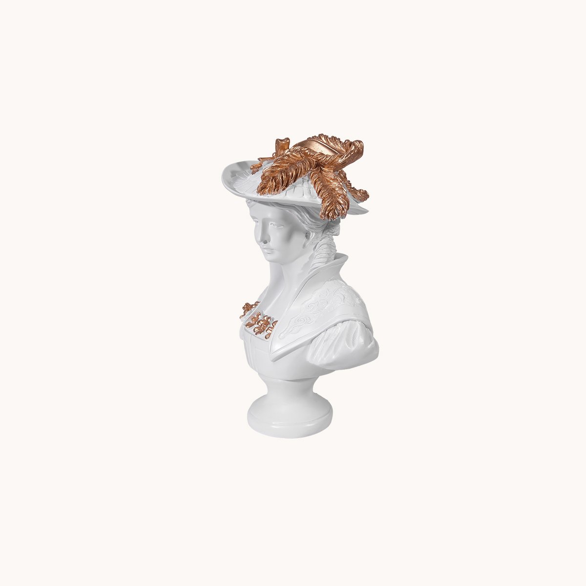 Camila Kadın Büst, zarif beyaz tonları ve göz alıcı altın renk detaylarıyla evinize şıklık katacak. Dekoratif parçalar arasında öne çıkan bu büst, estetik tasarımıyla her mekanda dikkat çekiyor. Onemay Mağazası'nın özel ürünleri arasında yer alan bu büst, dekorasyonunuza sofistike bir dokunuş ekleyecek.