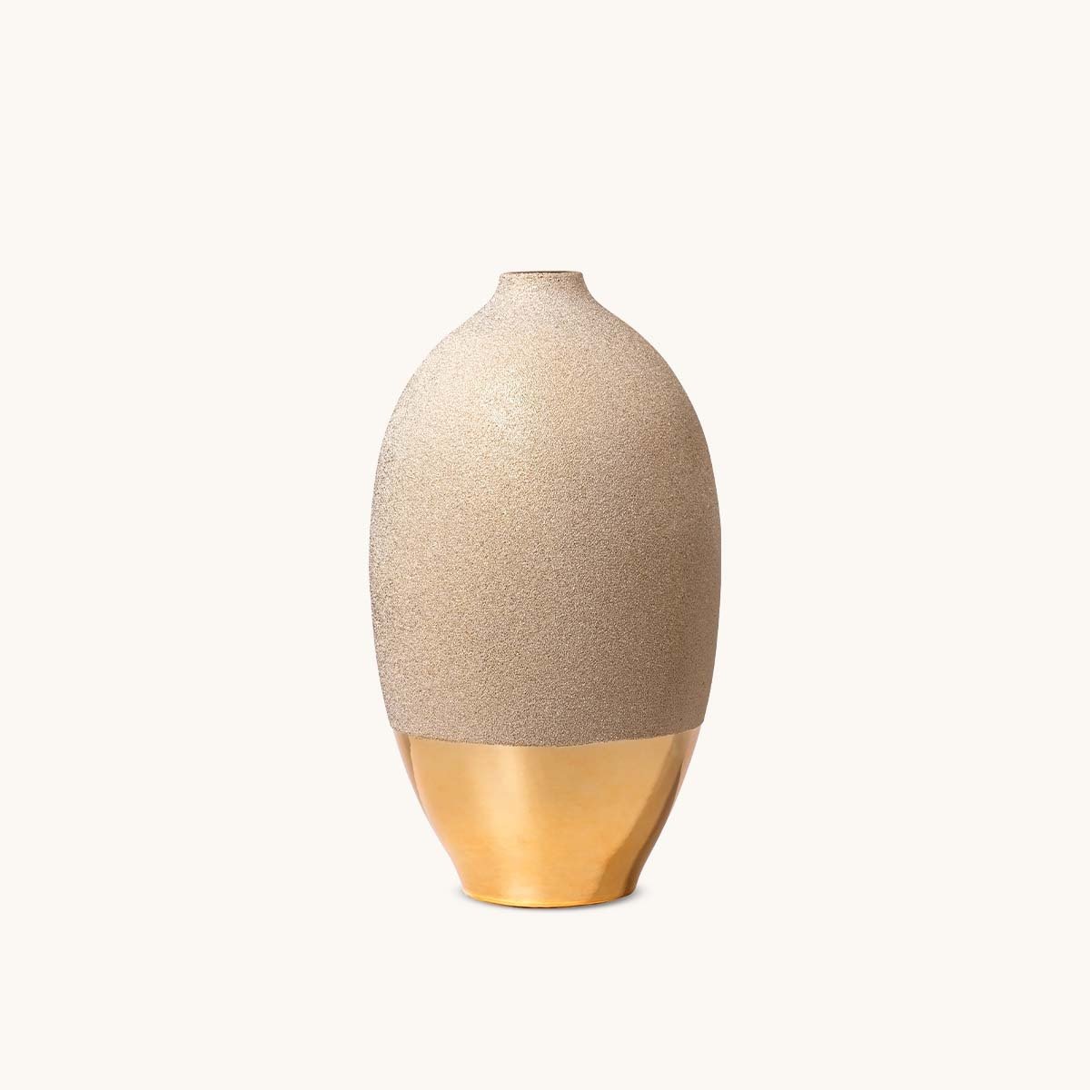 Metalik altın detayları ve doğal dokusuyla mekana sıcak ve lüks bir atmosfer kazandıran bu özel parça, çiçek aranjmanlarıyla veya tek başına sergilendiğinde göz alıcı bir etki yaratır.