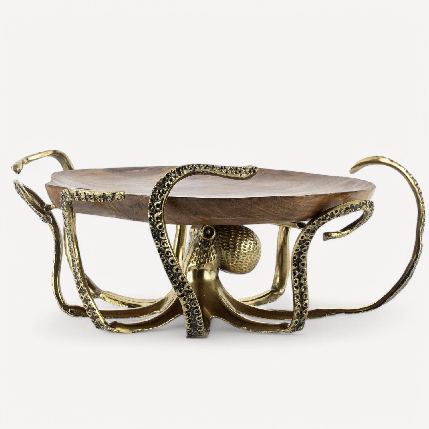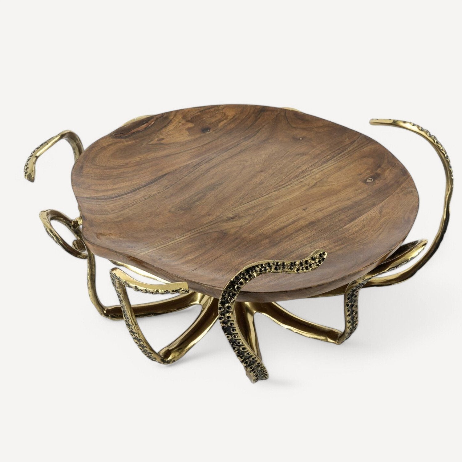 Altın Ahtapot Figürlü Ahşap Servis Tabağı