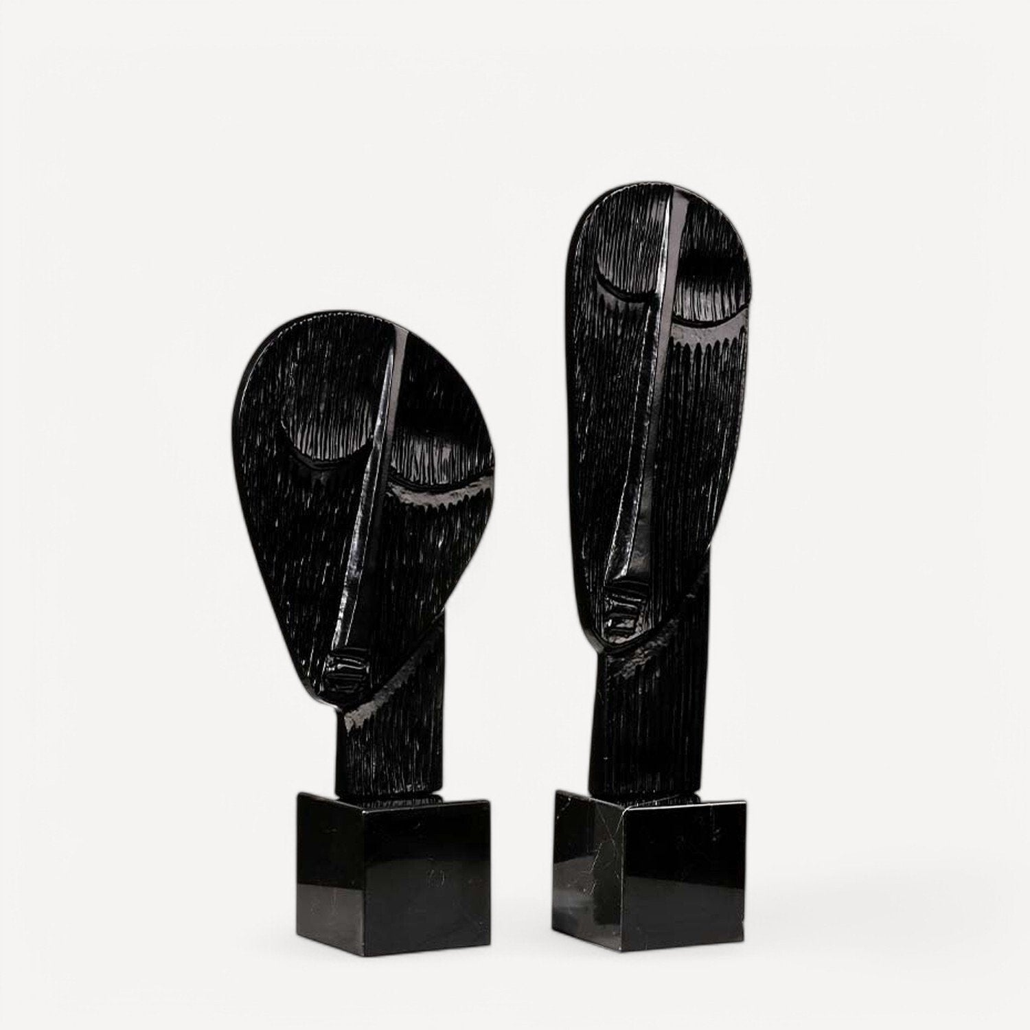 Sanatsal ve soyut formların etkileyici bir yorumu olan 2'li Pirinç Soyut Yüz Dekor, modern dekorasyona cesur bir dokunuş katıyor. Mat siyah yüzeyi, ışığı yumuşak bir şekilde emerek derinlik hissi yaratırken, el işçiliğini yansıtan ince çizgiler tasarıma karakter kazandırıyor.