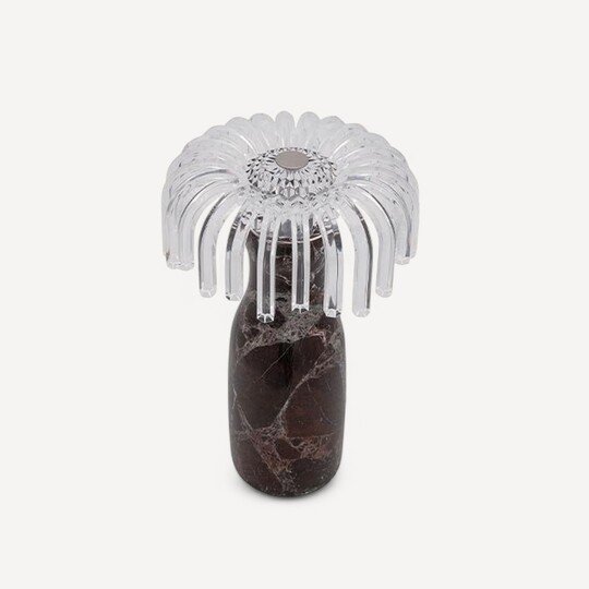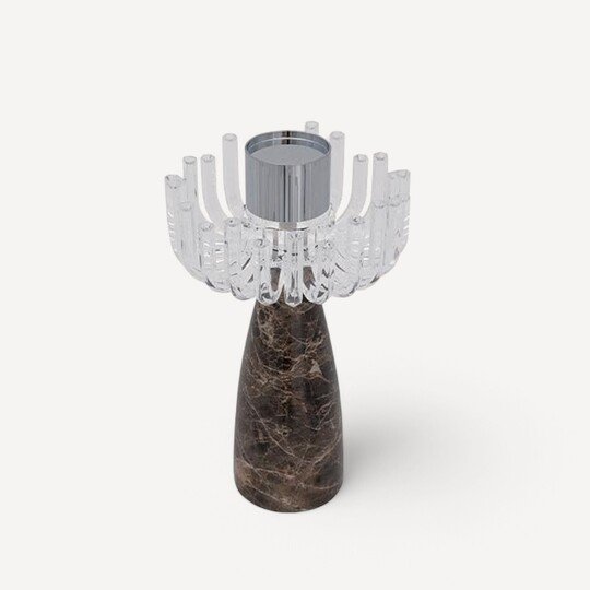 Doğal mermerin eşsiz damarları her bir parçayı benzersiz kılarken, ışığı zarifçe yansıtan akrilik üst bölüm, çiçek formunda tasarlanmış yapısıyla mum ışığını büyüleyici bir şekilde dağıtarak mekânınıza sıcak ve lüks bir atmosfer katıyor.
